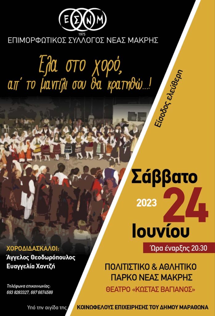 Σάββατο 24 Ιουνίου 2023 (8.30μμ): Μία βραδιά με τη συμμετοχή 120 χορευτών ενηλίκων και παιδιών στο ανοικτό θέατρο Κώστας Βαγιανός Είσοδος ελεύθερη Προβολές άρθρου : 2.246 ΕΠΙΜΟΡΦΩΤΙΚΟΣ ΣΥΛΛΟΓΟΣ ΝΕΑΣ ΜΑΚΡΗΣ