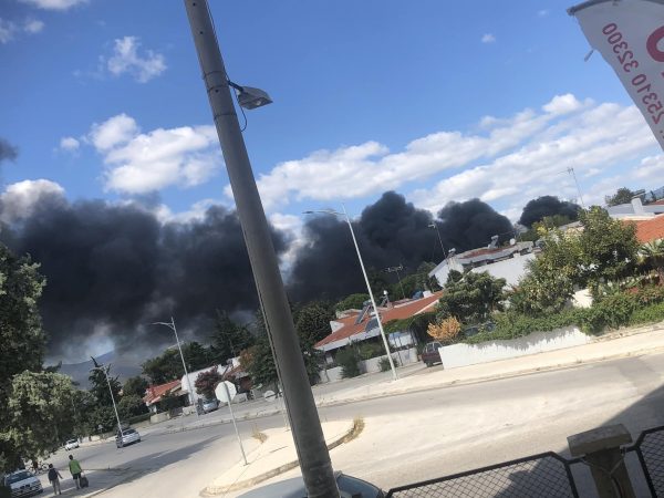 Μάλιστα η Πολιτική Προστασία έστειλε μήνυμα στις 14:14 μήνυμα στα κινητά τηλέφωνα των κατοίκων της περιοχής να παραμείνουν σε εσωτερικούς χώρους και να κλείσουν πόρτες και παράθυρα λόγω των πυκνών καπνών.