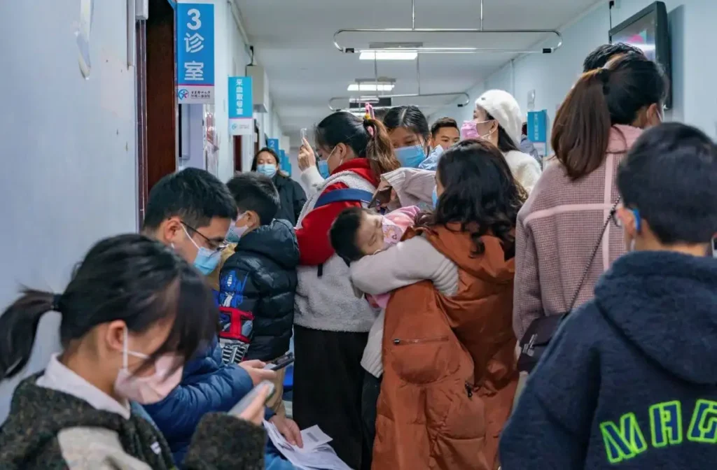 Σε βίντεο στα social media καταγράφεται η εικόνα σε νοσοκομεία της Κίνας με ασθενείς να φορούν μάσκες για τον COVID και γονείς κρατώντας τα άρρωστα παιδιά τους στην αγκαλιά να περιμένουν την εξέταση από παιδίατρο.