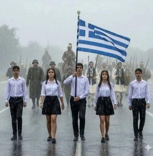 Την ίδια στιγμή, εικόνες από μαθητές που παρέλασαν υπό καταρρακτώδη βροχή στη Θεσσαλονίκη έρχονται να υπενθυμίσουν το πραγματικό νόημα της ημέρας: αντοχή, συνέχεια και σεβασμό στην ιστορία