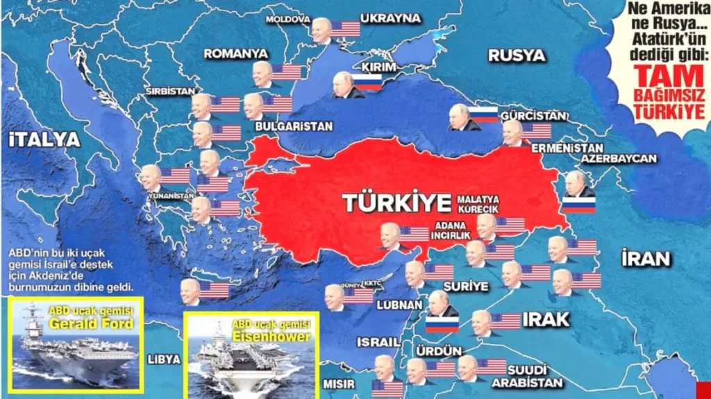 Με έναν χάρτη που παρουσιάζει την αμερικανική στρατιωτική παρουσία μέσα και έξω από την Τουρκία, ανάμεσά τους και οι βάσεις στην Ελλάδα, η τουρκική εφημερίδα Sozcu απευθύνεται στους αναγνώστες της λέγοντάς πως «Γνωρίζουν τον κίνδυνο».